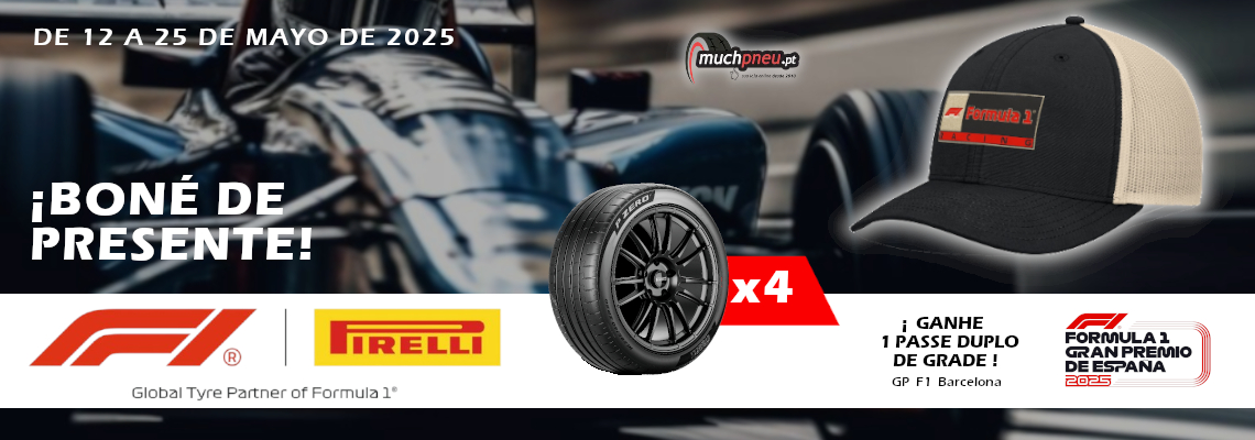 Compre 4 pneus Pirelli passageiro /SUV/4x4 de jante 17" ou superior e ganhe um boné oficial da Fórmula 1. Você também participará do sorteio de um ingresso duplo para assistir ao Grande Prêmio de F1 de 2025 em Barcelona.